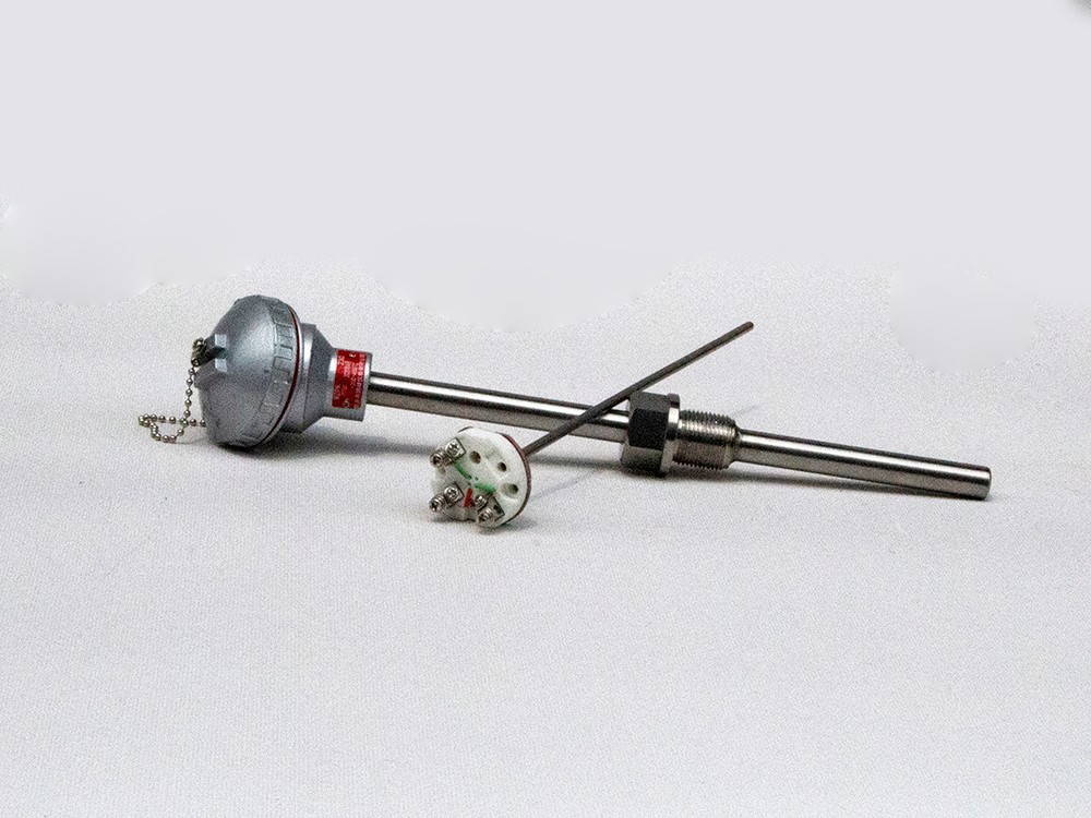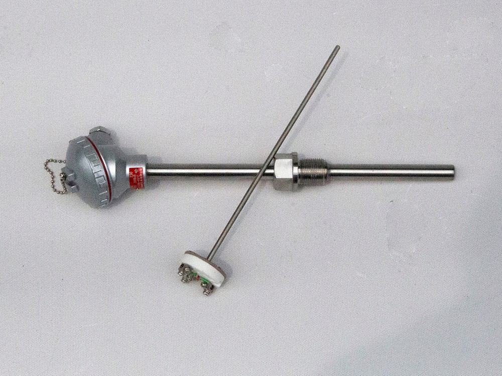 裝配式熱電阻主要由接線盒、保護(hù)管、接線端子、絕緣套管和感溫元件組成基本結(jié)構(gòu),并配以各種安裝固定裝置組成。